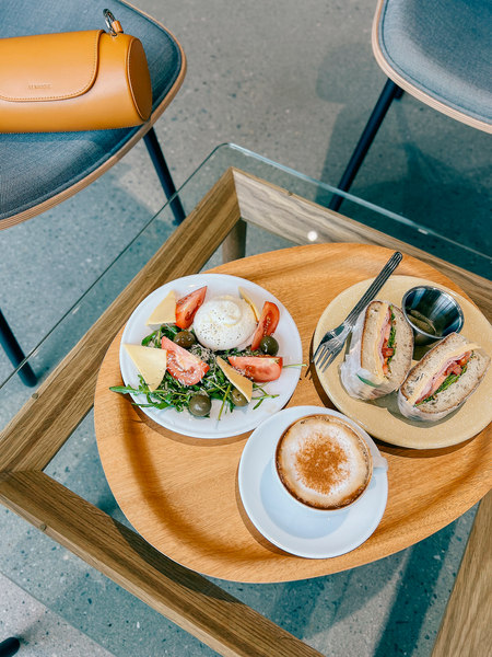 Меню: сэндвичи, салат, десерты, напитки на основе эспрессо, прохладительные напитки, пиво, вино.